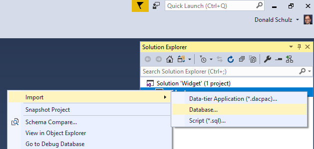 - Database Name: I named this database “WidgetSSDT” just to make this deployment won’t override my Redgate one. This database does not need to exist as it will be created if not found.